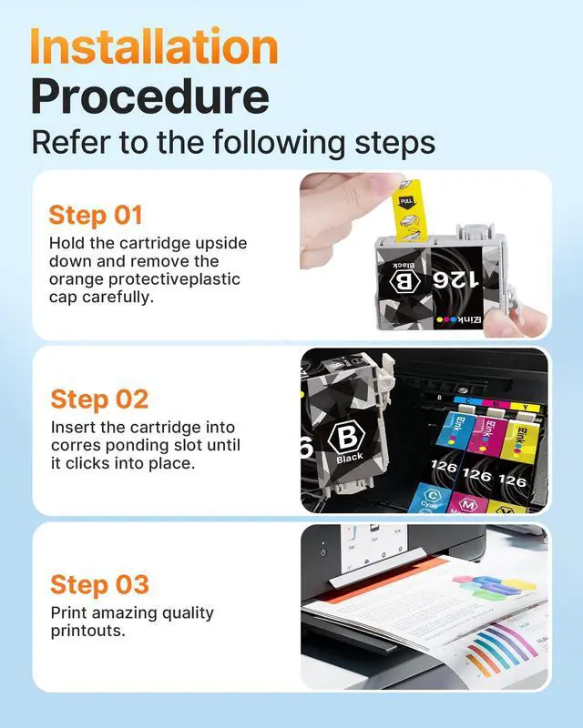Package Contents: 1 x User Guide, 6 x Black 126 T126, 2 x Cyan 126 T126, 2 x Magenta 126 T126, 2 x Yellow 126 T126 (Total 12 Pack of 126 ink cartridges) ^^