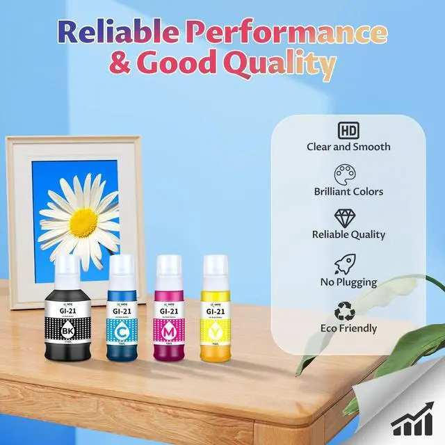 GI-21 Ink Bottles Excellent Quality: Topcolor gi-21 ink refill bottle features a newly upgraded ink formula, dries quickly, smooth and uniform, not clogging, not fading, ensuring smooth and clean printed text and vivid image colors. High quality and excellent results for daily printing in the office and home.