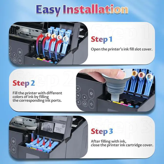 Refill Special Designs: GI21 ink refill bottle adopts auto-filling stop design to prevent ink from overflowing, no need to squeeze to fill. Easily fill your printer and work perfect. ^^