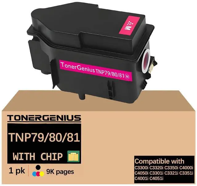 Compatible ModelsCompatible with Konica Minolta bizhub C3300i C3320i C3350i C4000i C4050i C3301i C3321i C3351i C4001i C4051i printers (replacement for TNP79 TNP80 TNP81) ^^ High Page YieldEach toner cartridge yields up to 9, 000 pages (Letter/A4 at 5% coverage) ^^ Package Contents1-pack universal TNP79/80/81M Magenta Toner Cartridge, compatible with Konica Minolta bizhub C3300i C3320i C3350i C4000i C4050i C3301i C3321i C3351i C4001i C4051i. Equipped with an intelligent tracking chip. Comes in factory-sealed packaging ^^ Quality AssuranceAll TNP79 TNP80 TNP81 toner cartridges compatible with Konica Minolta bizhub C3300i C3320i C3350i C4000i C4050i C3301i C3321i C3351i C4001i C4051i printers come with 24-month after-sales support ^^ With ChipThe universal TNP79 TNP80 TNP81 replacement toner cartridge comes pre-installed with a compatible chip for Konica Minolta bizhub C3300i C3320i C3350i C4000i C4050i C3301i C3321i C3351i C4001i C4051i models.