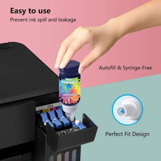 Syringe-Free: No messy syringes; The bottle mouth fits perfectly with the ink inlet of the sublimation printer, and the filling stops automatically without squeezing; Prevent ink spill and leakage; The best choice for sublimation beginners ^^