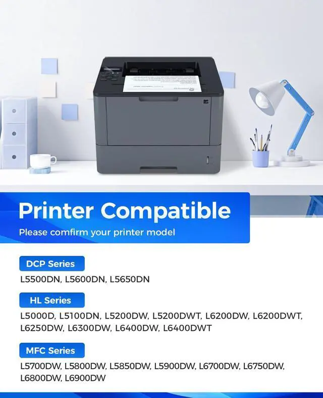 ^^ Compatible Printers: Compatible with Brother DCP-L5500DN DCP-L5600DN DCP-L5650DN HL-L5000D HL-L5100DN HL-L5200DW HL-L5200DWT HL-L6200DW HL-L6200DWT HL-L6250DW HL-L6300DW HL-L6400DW HL-L6400DWT MFC-L5700DW MFC-L5800DW MFC-L5850DW MFC-L5900DW MFC-L6700DW MFC-L6750DW MFC-L6800DW MFC-L6900DW Series Printer.