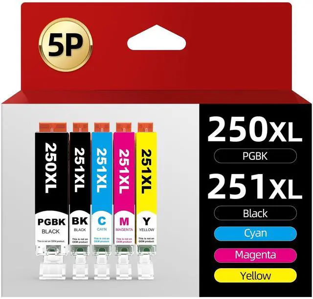 Contents: 1 x 250XL PGBK, 1 x 251XL Black, 1 x 251XL Magenta, 1 x 251XL Yellow, 1 x 251XL Cyan, 1 x User Guide (Total 5 Pack PGI-250 CLI-251 Ink Cartridges) ^^