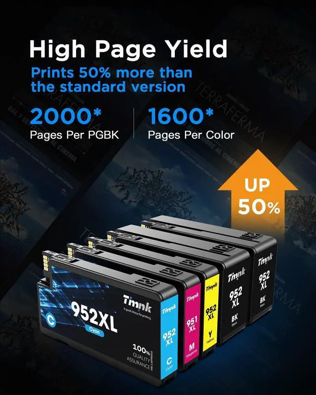 Work With: OfficeJet Pro 8710, OfficeJet Pro 8720, OfficeJet Pro 8740, OfficeJet Pro 7720, OfficeJet Pro 7740, OfficeJet Pro 8216 8200 8210 8218 8700 8702 8714 8715 8716 8717 8724 8725 8726 8727 8728 8730 8734 8735 8736 8743 8744 8745 8746 8747 Printer. ^^ Cartridge Yield (approx. ): Up to 2500 pages per 952 XL black, 2000 pages per 952 XL color cartridges at 5% coverage. High Yield printer ink cartridges for printers, which can be used for a longer time than others.