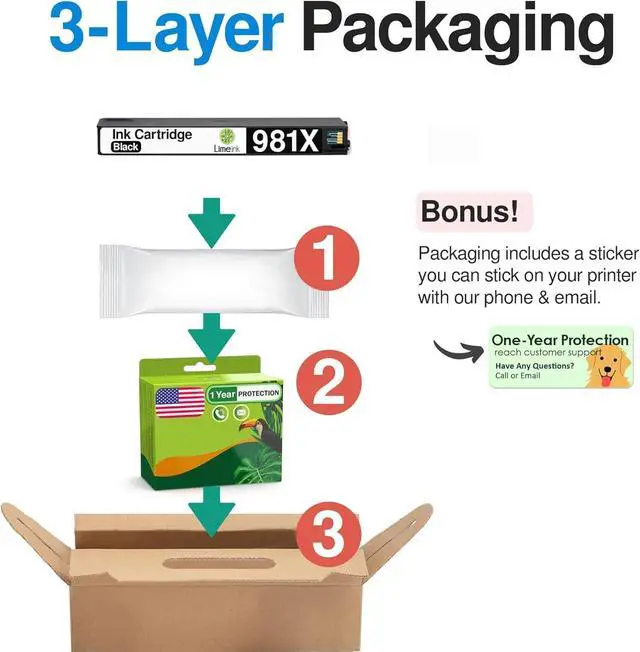 - Package contains: 981X Compatible for HP Cartridge (1 black). - Great quality prints with zero hassle. Effortlessly install and get consistent clear and vivid prints that match the performance of name-brand cartridges while saving money. - Get high yield cartridges that print for longer. Third party ink manufacturers are incentivized to fill their cartridges to the brim to compete with original manufacturers. We specifically test for ink fullness at the production stage.