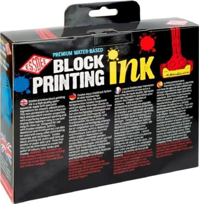 Essdee premium block printing ink is a high quality water-based ink made with specialist ingredients for smooth, vibrant prints. This non-permanent ink has enhanced tack and excellent transfer properties, with a perfectly balanced working and drying time making it easy to use and clean up. Essdee premium block printing ink prints well onto all grades of paper and card, and can be intermixed to create a full pallet of colours, tints, tones and shades.