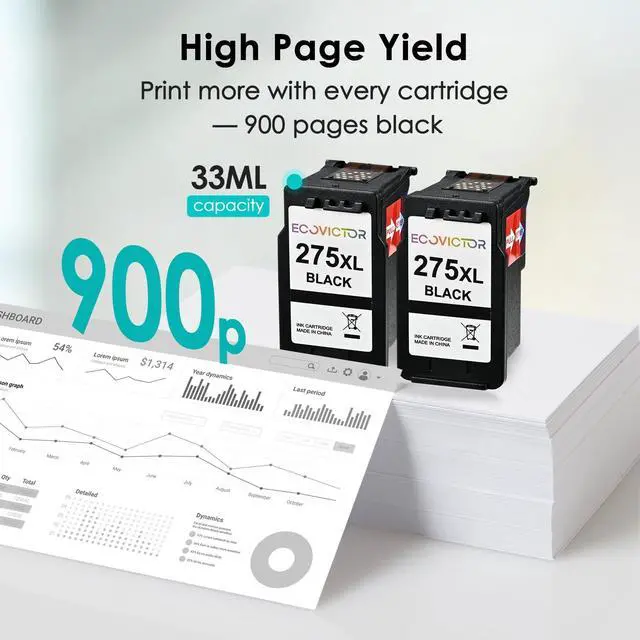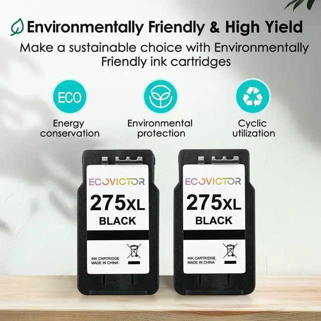 Monitoring: Our compatible with canon ink 275 are equipped with the latest smart chip. EcoVictor for canon 275 black ink ensures full compatibility with Canon printers. Monitor ink levels in real time and avoid unexpected interruptionsEcoVictor 275 black ink cartridges for canon printers are ideal for busy households and workplaces.