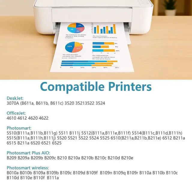 High Compatibility: Equipped with upgraded chips, Couleuris cartridges ensure fast recognition and seamless compatibility with your printer, including DeskJet 3520, 3525, OfficeJet 4620, and PhotoSmart B8550, C6380, D5460, 5520, 7520, Plus, Premium, eStation series.