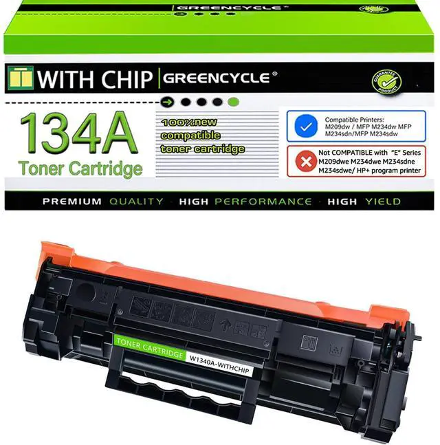 Item Name: GREENCYCLE 1-Pack Compatible Toner Cartridge Replacement for HP m234dw m209dw 134A W1340A Black Toner Cartridge WITH CHIP. ^^ Compatible for