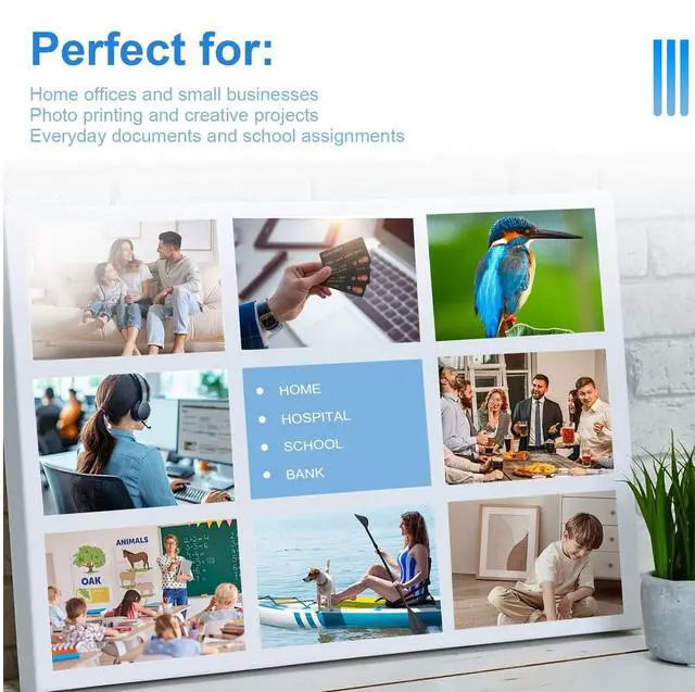Perfect for:Home offices and small businesses Photo printing and creative projects Everyday documents and school assignments
