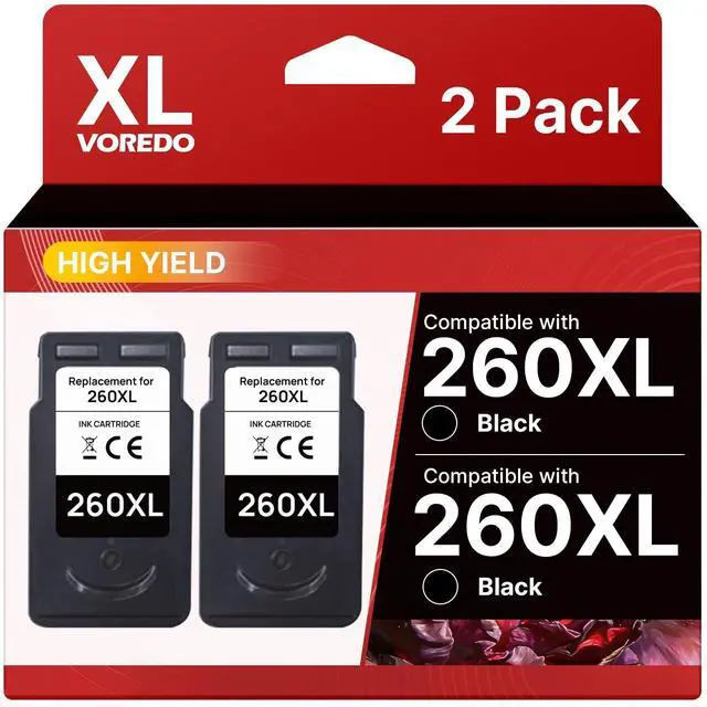 Upgraded Latest Chips: All pg-260xl black ink cartridge for Canon 260 black ink are equipped with upgraded intelligent chip that allows you to track ink level at anytime