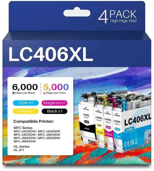 Package Content: 1 x User Guide, 1 x Black lc406xl ink cartridges for brother printer, 1 x Cyan lc406xl ink cartridges for brother printer, 1 x Magenta lc406xl ink cartridges for brother printer, 1 x Yellow lc406xl ink cartridges for brother printer (Total 4 Pack) ^^ 5.