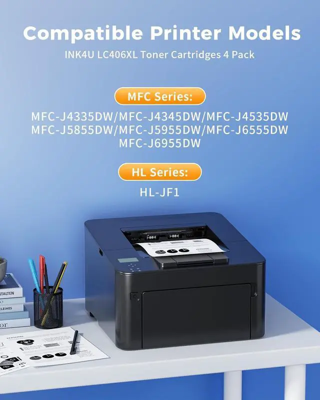 Compatible Printer: LC406 Ink cartridges for Brother MFC-J4335DW, MFC-J4335DW XL, MFC-J4345DW, MFC-J4345DW XL, MFC-J4535DW, MFC-J4535DW XL, MFC-J5855DW, MFC-J6555DW, MFC-J6955DW, MFC-J5955DW, HL-JF1 Printer ^^ 4.