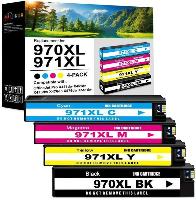 ^^ Quantity Included: 1 black, 1 yellow, 1 magenta, 1 cyan, 4 pack compatible replacements for hp 970xl black ink cartridge and for hp 971xl ink cartridges.
