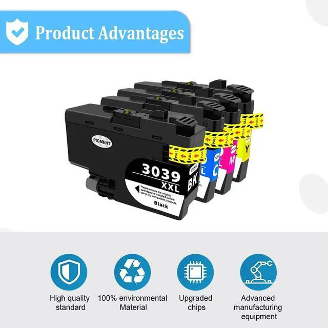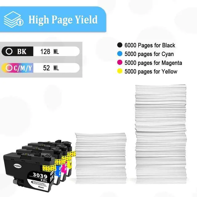 Compatible Printer - - Compatible ink Cartridge for us with Brother MFC-J5845DW, MFC-J5845DW XL, MFC-J5945DW, MFC-J6545DW, MFC-J6545DW XLMFC-J6945DW Printers. ^^ Package Contents - - 4 Color Multipack (Including 1 * LC-3039BK XXL Black, 1 * LC-3039C XXL Cyan, LC-3039M XXL Magenta, LC-3039Y XXL Yellow). ^^ High Print Yields - - Approximately 6, 000 pages per Black ink cartridge; 5, 000 pages per Cyan/Magenta/Yellow ink cartridge, at 5% coverage, A4 paper, letter. (ISO/IEC standard). ^^ Vivid Colors, Crisp Text & Upgraded Chip Technology -- Experience vibrant colors and sharp, clear text with every print, thanks to advanced ink formulations.