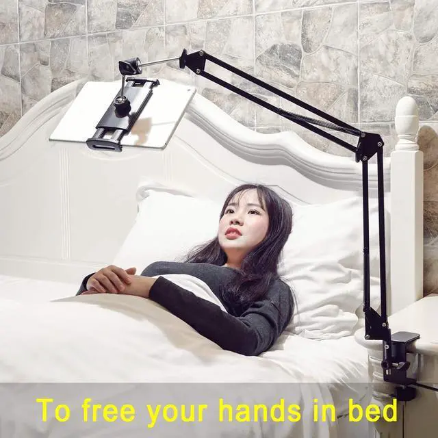 Bed Entertainment: Sturdy mechanical aluminum arm stand is equipped with super strong spring to hold up more weight (MAXIMUM