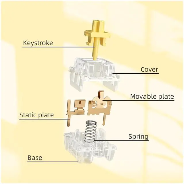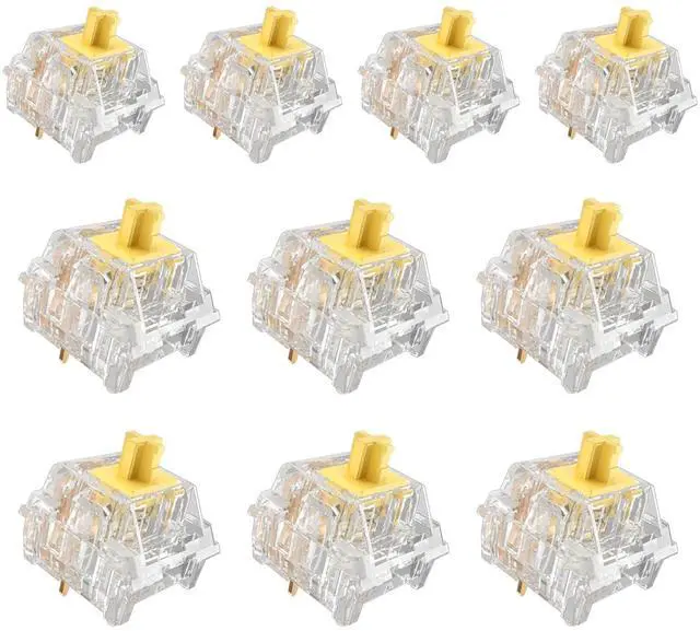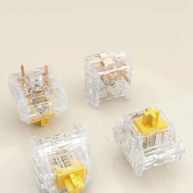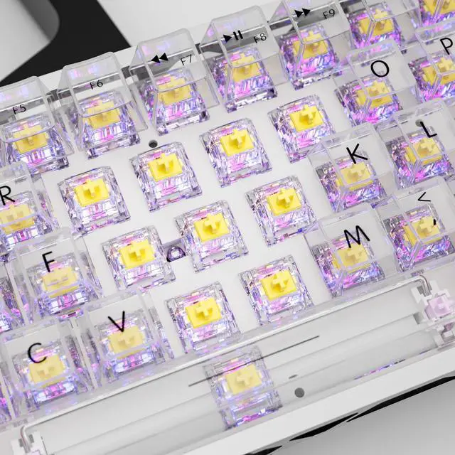 Transparent: Featuring a Durable Transparent Polycarbonate (PC) Housing, The Transparent switches are the Perfect Companion for clear Keycaps and Acrylic Keyboards. They Seamlessly align with the Ultimate Transparency trend, Showcasing RGB lighting Effects to Perfection.