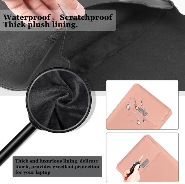 Wide CompatibilityOur laptop sleeve is compatible with 15"- 15.6" MacBook, including MacBook Air 15" M4 2025 / M3 2024 (A3114) / M2 2023 / MacBook Pro (15") (A1707). (Please check the model number XXXXXX at the bottom. ) It also supports Surface/Lenovo/HP etc, but does not support laptops thicker than 2cm. ^^ Ultimate ProtectionThis laptop sleeve features a premium, waterproof PU leather exterior that effectively protects your laptop from scratches and water damage. Its soft, smooth surface is easy to clean. The interior is lined with a thick, plush material to effectively shield your device from bumps and dust.