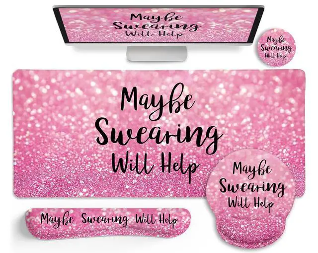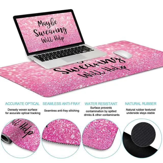 Fun Design: Add a touch of cuteness and personality to your office or gaming setup with this adorable pink mouse pad. The funny and inspiring text "Maybe Swearing Will Help" adds a playful and light-hearted element to your workspace, making it a great conversation starter or a unique gift for friends or colleagues ^^ Funny