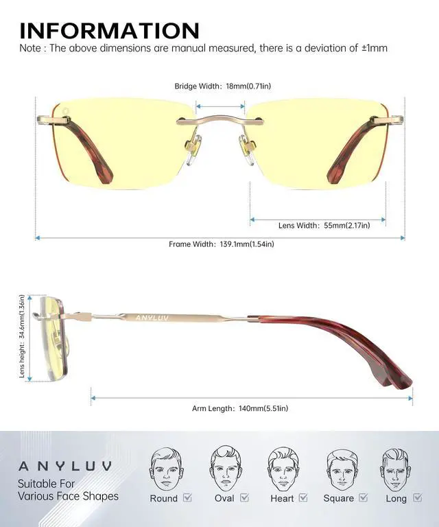 Men & Women: Designed for unisex appeal, Anyluv blue light glasses men and women love combine functionality with minimalist elegance. The frameless design suits all face shapes, making them a gift for professionals, gamers, and students.