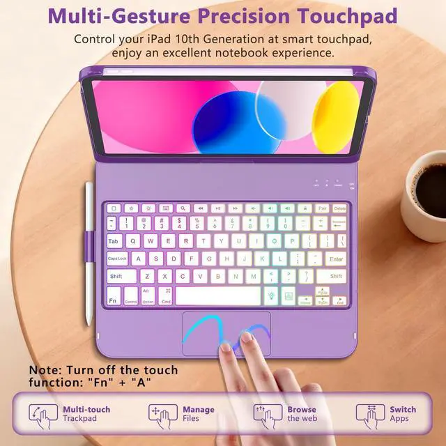360 Rotatable Keyboard Case for iPad 10th generation: This Touchpad for ipad 10th Generation case with keyboard support 360 rotatable. Designed for iPad 10.9 10th Gen 2022 (Model