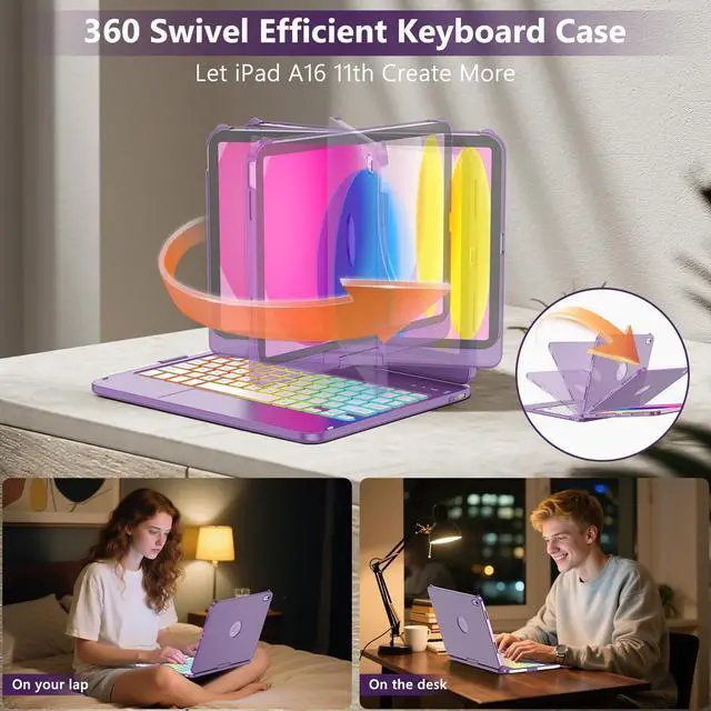 Generation: With this keyboard case for ipad 10th Generation, it only takes a few seconds to change for iPad to Laptop, you can watch your favorite movies or read new books and enjoy tablet in comfort ^^ 7 Colors Backlit keyboard case for iPad 10th