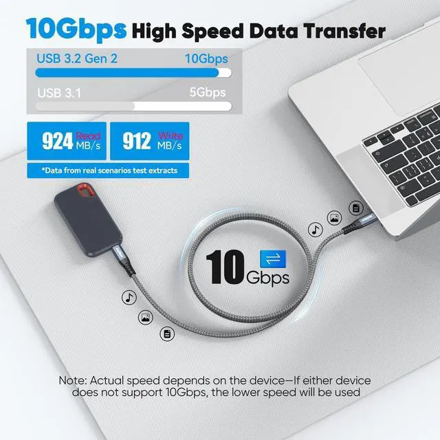 Data Transfer: The usb 3.2 cable has a transfer speed of up to 10Gbps and can be connected to Samsung /Sabrent/Western Digital SSDS for large file transfer, allowing stable and fast migration of image files from your phone to your laptop ^^