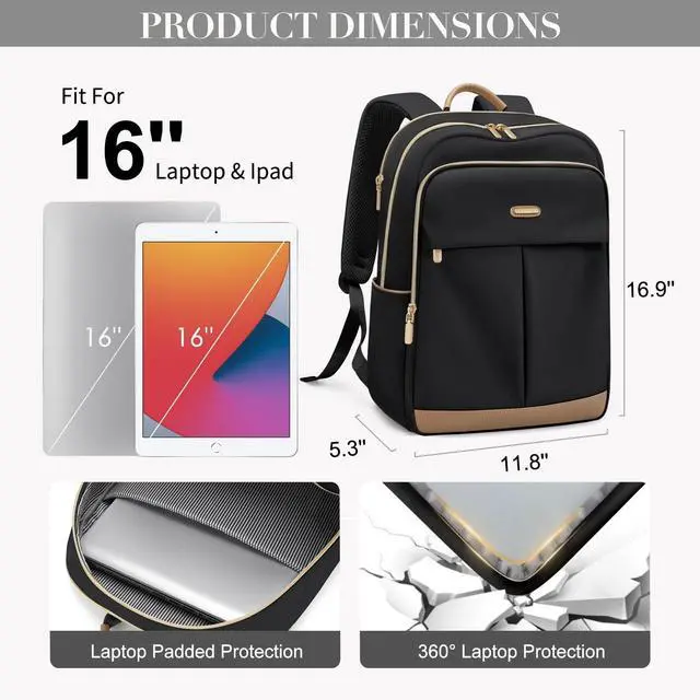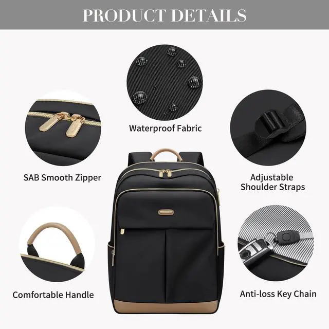 DURABLE & COMFORTABLE: This laptop backpack for women is made of high-quality fabric, which is tear-resistant and extremely durable. Ergonomic and mesh airflow shoulder straps can relieve shoulder pressure. Premium-quality hardware zippers assure wonderful visual and usage effect. Vintage leather handles match well with stylish design. The stable bottom of the travel backpack can better carry the backpack for women ^^