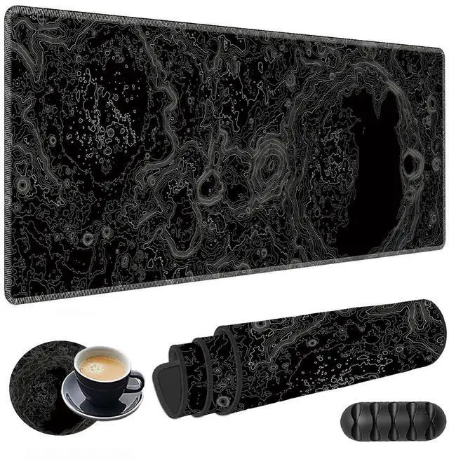 Large Gaming Mouse Pad Plus a Coasters + Cable Clips, Extended Mousepad (31.5 x 11.8) with Stitched Edge, Foldable Computer Keyboard Desktop Mouse Mat for Home Office, Surface of The Moon