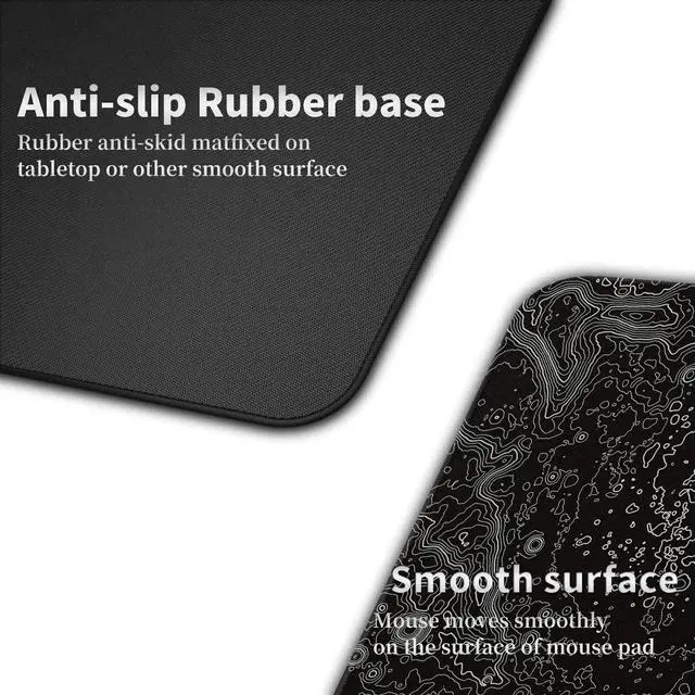 • Natural Rubber Base The soft and dense non-skid nature rubber base keeps this oversize desk pad firmly in place. This long mouse mat remains uniformly flat even over imperfect surfaces. Just immerse your work or games without worrying about the annoying mouse pad movement.