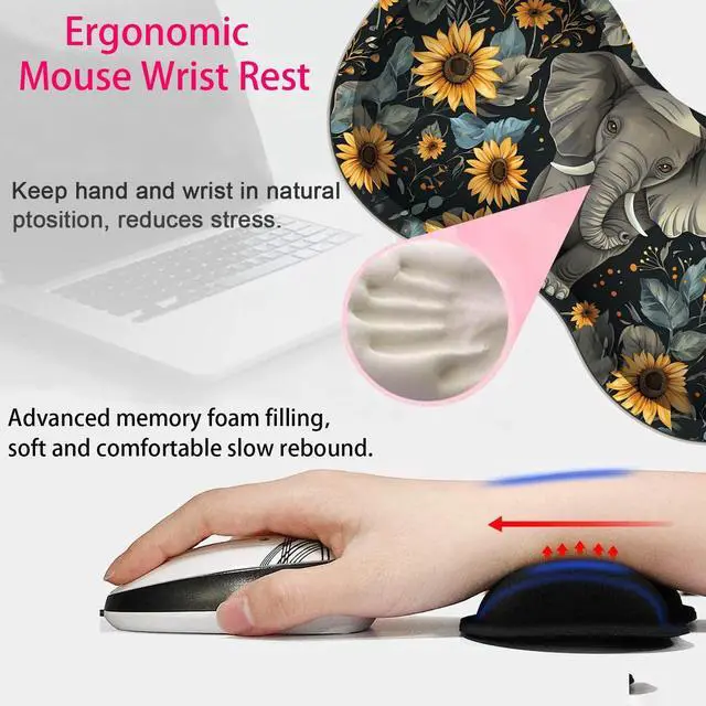 Features: -- Non-toxic, odorless, and harmless to health. --Extended mouse pad protects your desk from scratches, stains, splashes and heat. -- The surface will not wear or deform and is easy to clean. --The wrist rest is ergonomically designed for a soft, cushioned feel. -- Offers a choice of different cute patterns, suitable for both men and women.