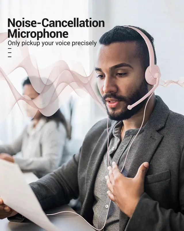 USB Headset with Microphone for PC - Wired Computer Headphones with Noise Cancelling Microphone for Home Office Online Class Skype Zoom Meetings