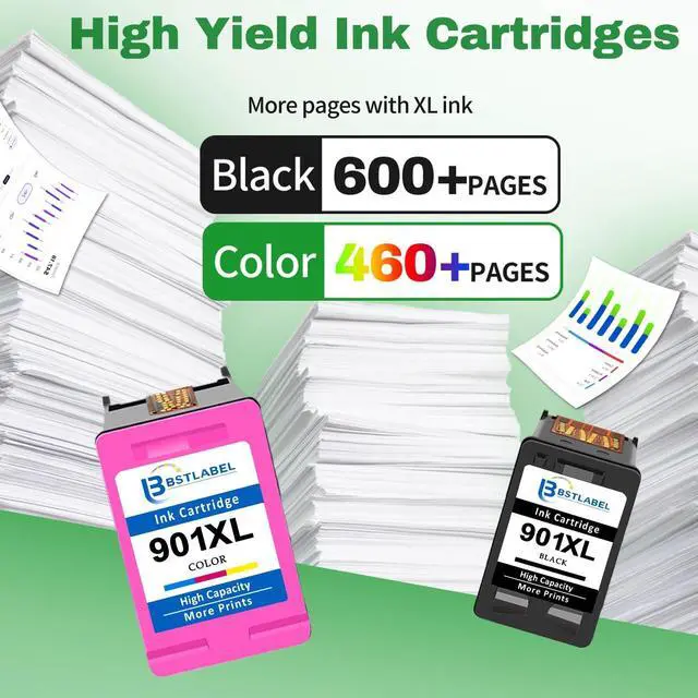 ^^ High Yield: Up to 600 pages per BSTLABEL for 901 XL for HP 901 black ink cartridge high yield & 460 pages per BSTLABEL for 901XL color ink cartridge for HP printer at 5% coverage. ( A4 paper size ) ^^
