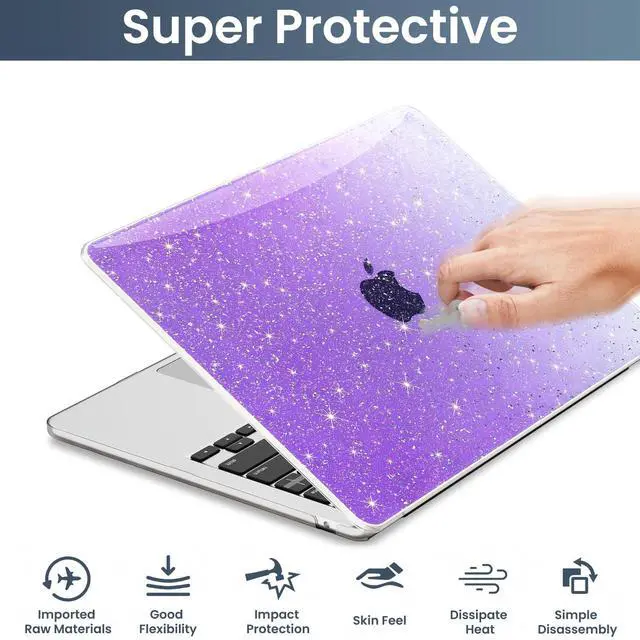 M2/M3 chip (Model: A2681/A3113/A3240), maintains full access to MagSafe charger & Thunderbolt ports. ^^ Premium IMD Technology MacBook Air 13 inch case Crafted with advanced In-Mold Decoration (IMD) process, this glitter macbook air cover case features a "3x more vibrant" sparkle effect than regular glitter cases. The ultra-smooth surface resists fading, peeling, and scratches for long-lasting shine. ^^ Dazzling Glitter & CrystalHigh-density glitter particles combined with a "HD transparent back" showcase your MacBook Air 13.6 inch 2025 original color while adding a luxury sparkle. Perfect for parties, weddings, or daily use! ^^ Secure Snap-On Design - Precision-engineered clips hold MacBook Air 13 inch M3 firmly without scratching, installs/removes in 10 seconds. Allows your MacBook Air 13.6 inch to open more than 90 degrees and allows full access to all functions. ^^ Complete Protection Set - The case for Macbook Air includes soft transparent keyboard cover & protective screen protector in package. All thses cases we provide 1 year warranty, please feel free to contact us if you have any question.