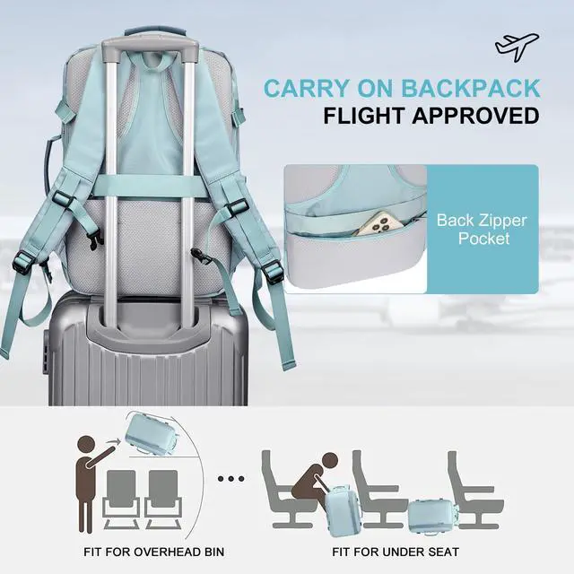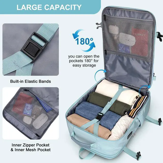 Large Capacity: This personal item travel backpack can expand from 30L to 40L (depth increases from 8.6 to 11.75 inches), giving you the flexibility to choose its size based on your needs. Easily fit 3 to 5 days' travel essentials such as an 11" iPad, a 16" laptop, 2 sets of clothes, a water bottle, and an umbrella.