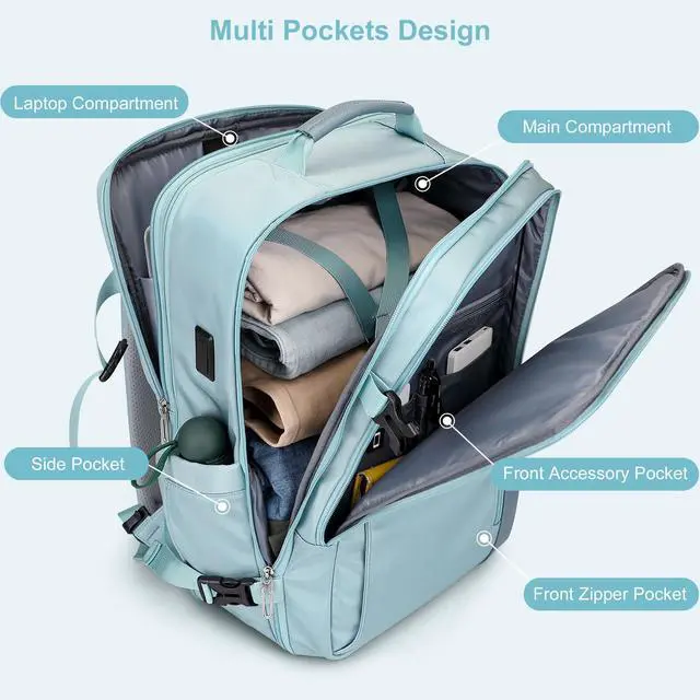 ^^ Lightweight and Comfortable: Made of tough, lightweight nylon, our womens traveling backpack is a breeze to carry at only 1.16 kg ( 2.5 lbs). Designed for comfort on the go, it features adjustable straps and a breathable padded back to keep you comfortable during extended use. ^^ USB Port and