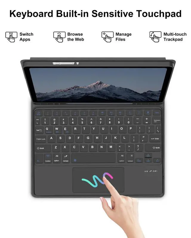 Compatibility ModelFits for Samsung Galaxy Tab S10 FE/S9 FE 5G 10.9 inch (Model SM-X510/X516B/X518U), for Samsung Galaxy Tab S9 11 inch (Model SM-X710/X716B/X718U) 2023 Release tablet. This galaxy tab keyboard case will NOT work for any other model device. ^^ Precision Touchpad Keyboard for Galaxy S9 TabTransform your tablet into a powerful productivity tool with our for samsung tablet a9 plus keyboard. The new ergonomic touchpad for samsung s9 fe tablet case with keyboard supports clicks, pinching, sliding, and rolling. Just fingertips to accurately control the tablet, edit documents at an unparalleled speed, browse the network, and create presentation.