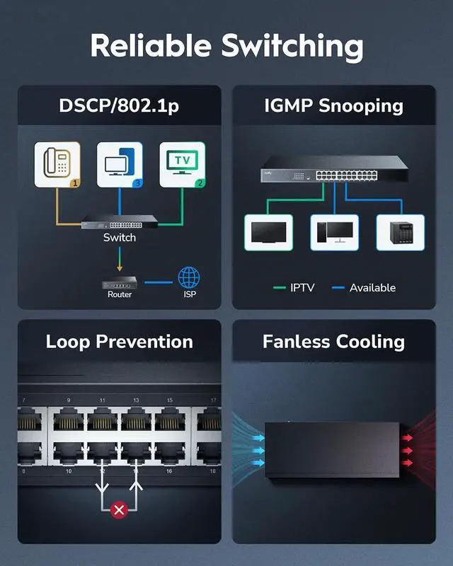 ^^ Quiet and Reliable: IEEE 802. 3X flow control provides reliable data transfer and Fanless design ensures quiet operation. ^^ Desktop or