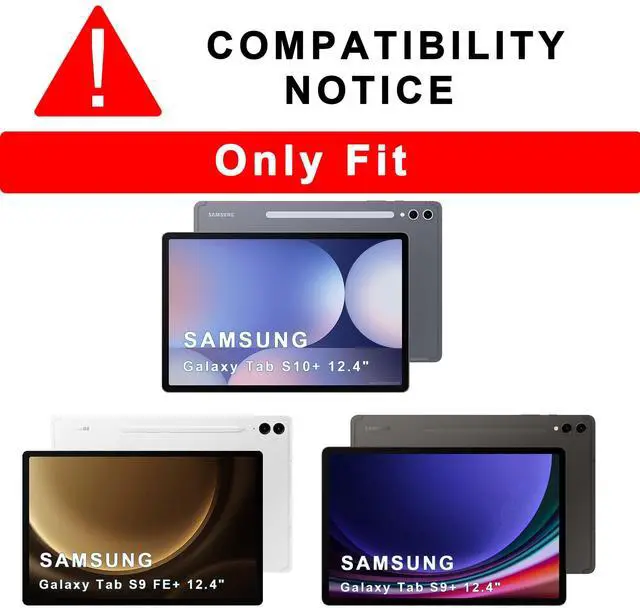 control your Samsung Galaxy Tab S10+ Plus/S9+ Plus/S9 FE+ Plus on several things. Edit documents, browse the network and create presentations at unparalleled speed to bring you high productivity convenience. Even the most complicated workflow can become so easy ^^ High-Quality Waterproof Keyboard - Daily life waterproof design, no longer have to worry about your coffee spilling on the keyboard to damage the keyboard. with high end abs material, the spring mechanism under each button ensures that there is a tactile response every time you tap, helping you to type faster and make fewer mistakes than typing on a touch screen ^^ Excellent Protection and Pen Holder - The non-slip design and 360 protection against scratches, bumps and dents protect your tablet from all kinds of accidental drops. Built-in pen holder, pen cap and adapter slot to store your Samsung Galaxy Tab S10+ Plus/S9+ Plus/S9 FE+ Plus pen for easy carrying and use ^^ 3 Angle Stand Detachable Keyboard Case - Separable design allows you to switch between a lightweight laptop and your Samsung Galaxy Tab S10+ Plus/S9+ Plus/S9 FE+ Plus. Three adjustable angles 120 125 135 provide a comfortable viewing angle - perfect for typing, reading and gaming - giving you amazing versatility