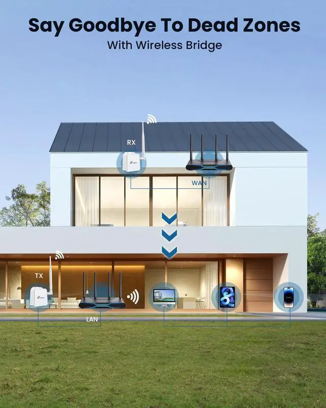 ^^ Upgrade your network with our wireless Ethernet bridge that uses 802.11 ah Wi-Fi HaLow technology, offering speeds up to 16Mbps and extensive coverage. It can penetrate one wall with a range of up to 350 feet. ^^ Weather-resistant design with operating temperature range of -5F-120F(-20-48). It can meet the demand for long-distance wireless transmission in a variety of outdoor scenarios, including buildings, factories, construction sites and warehouses, etc.