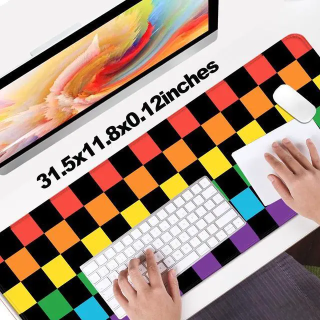 JIANG100 Retro Checkered Gaming Desk Mat, Computer Keyboard Large Extended Long Mouse Pad for Office and Home, XL(H07)