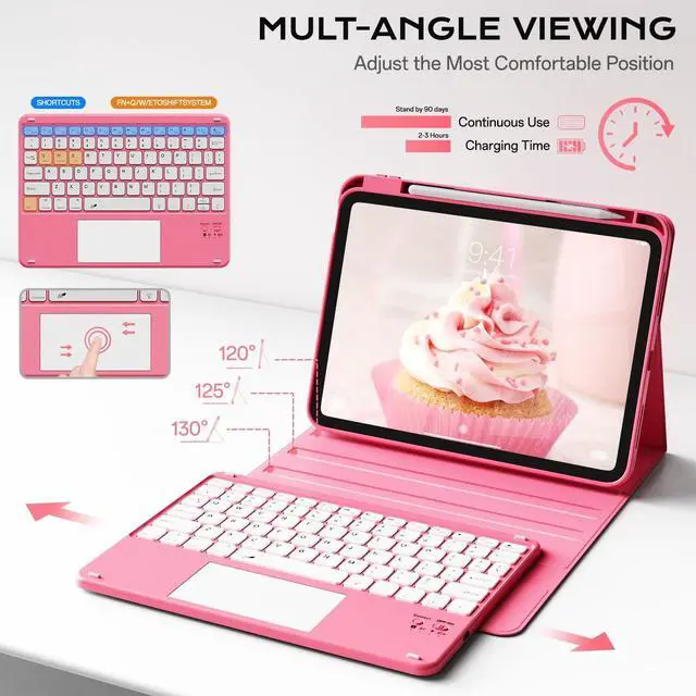 Note: Please check your model before purchase, find the model number (AXXXX) on the bottom of the back of iPad. If the size is not suitable, please contact us, we will solve the problem for you. ^^ 7 Colors Adjustable Backlit & Touchpad KeyboardTaking into account typing in dark environments, JKSML iPad (A16) 11th gen/ iPad 10th gen backlit bluetooth keyboard is specially designed with 7 backlight colors and 3 levels of adjustable brightness. It also has a mode for automatically switching light colors and a single color constant light mode. The clever touchpad design allows you no longer to rely on the mouse. Swipe or tap with your finger. ^^ Right Side Pencil Holder & 3 Adjustable AnglesJKSML 11" iPad 11th Generation (A16) 2025 Case and 10.9" iPad 10th Generation Case has a built-in pencil holder on the right side to storge the Apple Pencil (Not included), it is easy to put in and take out the pencil. This keyboard case provides 3 angles of use (120/125/130), which is easy to adjust. You can choose the most comfortable angle for typing, viewing, reading, sketching and so on.