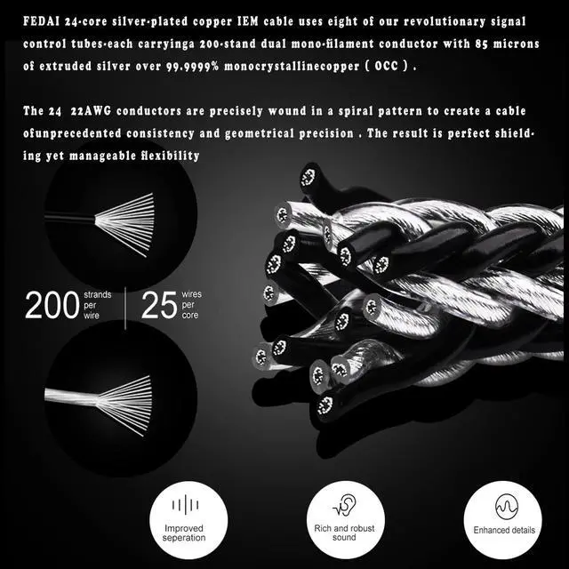 Why usThis upgrade Upgrade Silver Plated Replacement Earphones Cable is nice and durable in the braid and quality. It is a cable that can extract the potential of the earphone to the limit. the sound is exquisite, clear, full and round and full of analytical force, be rich, more detailed. If you are pursue of sound quality, it is a nice choice for you.