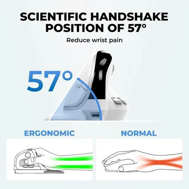 Turn off the mouse light: press the wheel and backforward button simultaneously to switch between 5 light modes until the light turns off ^^ Tri-mode ConnectionThis vertical mouse has 3 connection modes: wired, wireless 2.4G and BT(The 2.4G USB Receiver is stored below the mouse). To improve your experience, this mouse adopts improved bluetooth 5.0 mode and 2.4G hz wireless transmission to provide a strong and stable connection, which can significantly improve work efficiency (Note: BT 5.0 is for Win8+ systems only) ^^ 5 Adjustable DPI for Precision ControlSwitch between five DPI gears (800/1200/1600/2400/4000) to realise the pointer speed and mouse accuracy, and enjoy the most appropriate mouse responsiveness. Up to 7200 DPI can be set via the driver ^^ USB A-C Rechargeable BatteryBuilt-in 1000mAh battery and an energy-saving mode, allowing you to use the mouse for up to 2 weeks on a full charge. The mouse can be easily recharged with the included 1.6 m braided cable. You can work while charging the mouse, increasing your productivity ^^ Widely CompatibilityCompatible with Windows XP, Vista, 7, 8, 10, 11 operating system. Fits for different devices, Laptop, PC Computer, Notebook, Macbook