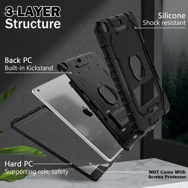 ZoneFoker Case for iPad 9th/8th/7th Generation 2021/2020/2019(10.2 inch), Heavy Duty Military Grade Shockproof Rugged Protective 10.2" Cover with Built-in Stand for iPad 9 8 7 Gen (Black)