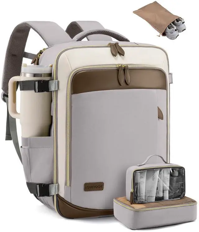 EXPANSIVE 50L CAPACITY FOR ORGANIZED TRAVEL - Journey with everything your travel essentials for 4-7days, neatly organized in this versatile carry on backpack. Its luggage-style main compartment, separate laptop section, and multi-pocket zipper front pocket offer unmatched convenience ^^ LIGHTWEIGHT YET RUGGED - Crafted from tear-resistant, water-resistant materials, this travel backpack for women weighs a mere 2.6 pounds. Complemented by exquisite craftsmanship and reinforced stress points. This backpack withstands the rigors of travel ^^ AIR TRAVEL MADE EFFORTLESS - Glide through airports with ease! This carry on bag, sized at 19.5 x14x9 inches, aligns with most airline carry on travel bag requirements.