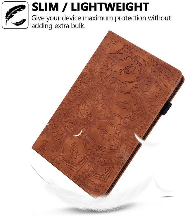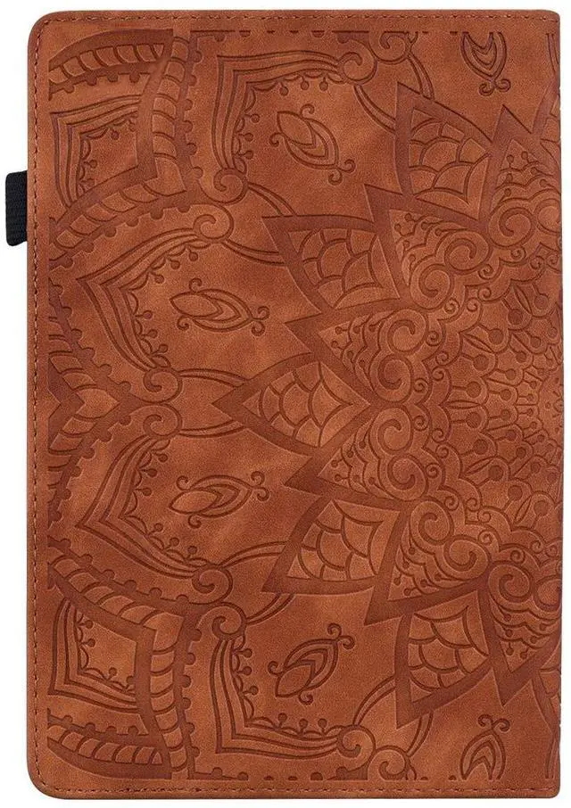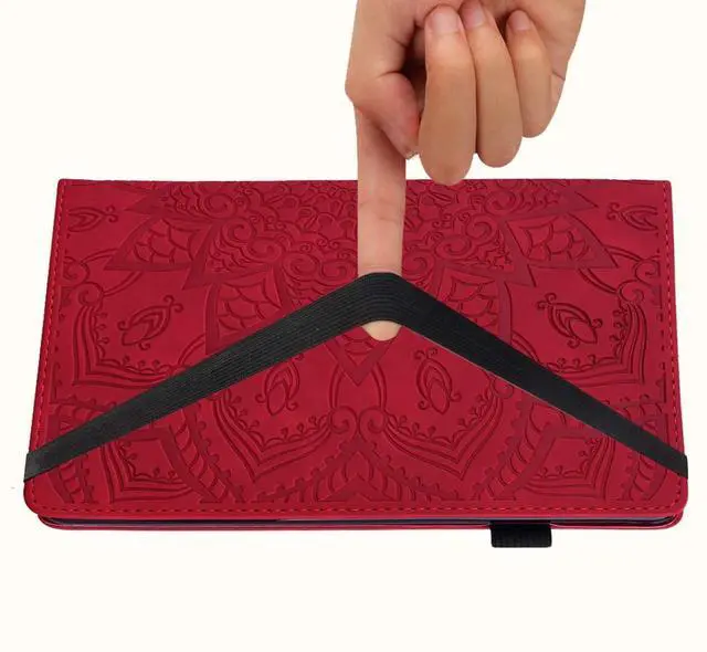 Features: Pretty mandala flower embossed surface, offers exquisite and attractive look for your tablet. Easy access to all features and controls (camera, charging port, volume button, etc) without removing the case. Elastic strap closure ensures cover securely closed, double fixing your device when fold the front cover backward for reading. Front-to-back protective cover case give a full protection for your tablet against dust, water, fingerprints, scratches, shocks and bumps. Interior with 2 card holders for carrying your ID/ credit cards/ business cards/ photos. Side with an elastic loop holder for stylus.