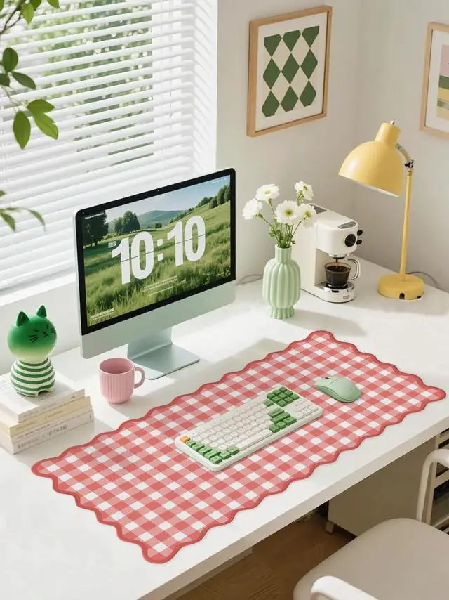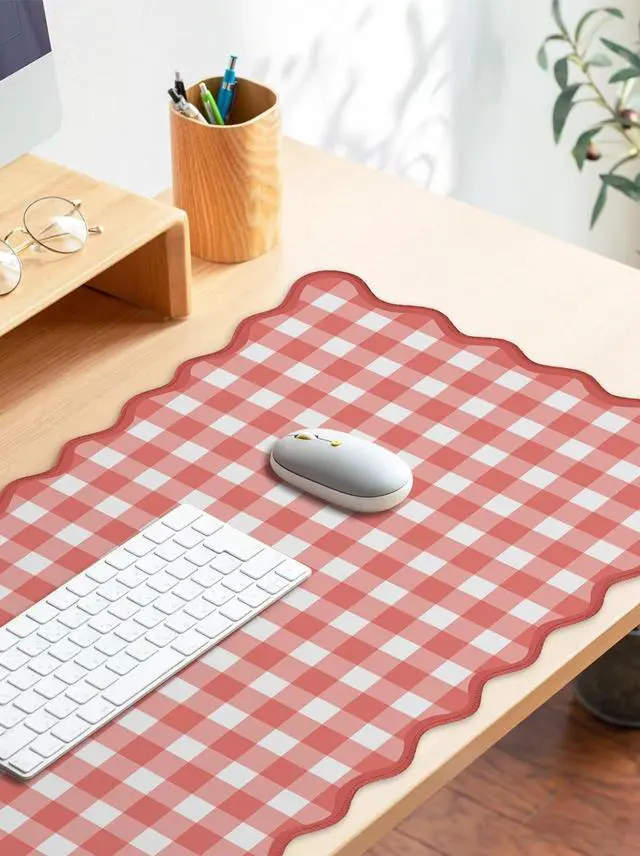 Stylish Red Gingham Desk Mat: Featuring a charming gingham pattern, this xxl large mouse pad adds a touch of playful elegance to your desk. The classic checkered design is both timeless and trendy, making it a perfect match for any home or office decor style. ^^
