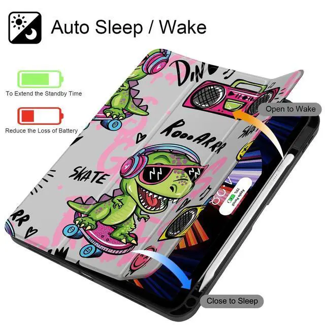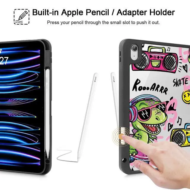Mektron Case for iPad Air 11 inch (M3 2025 7th /M2 2024 6th), Compatible with iPad Air 10.9" (2022 5th Gen /2020 4th Gen), Buit in Pencil Holder with Shockproof Clear Shell, Cool Dinosaur