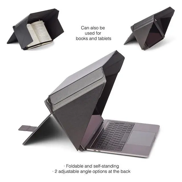 Built-in Stand: The Lux Hood features a foldable stand and a convenient pocket for added functionality. Ideal for working outdoors or in public spaces like trains, planes, or coffee houses, this foldable computer shield is easy to carry and install. The elegant design ensures it seamlessly integrates into your work routine, providing both practicality and style. The first Screen Shade products on the market Patent no. D790551.